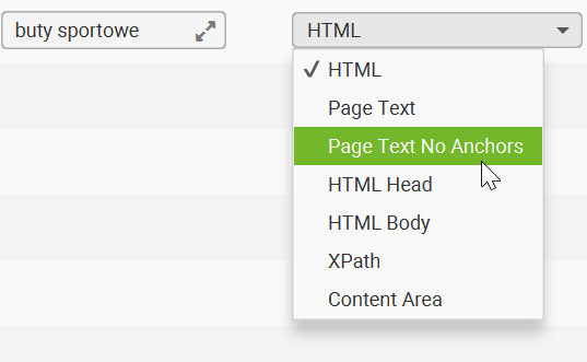 W ostatnim rozwijanym polu wybierz opcję Page Text No Anchors. Dzięki temu narzędzie będzie szukać podanej frazy, wykluczając miejsca, gdzie tekst ten jest już linkiem.